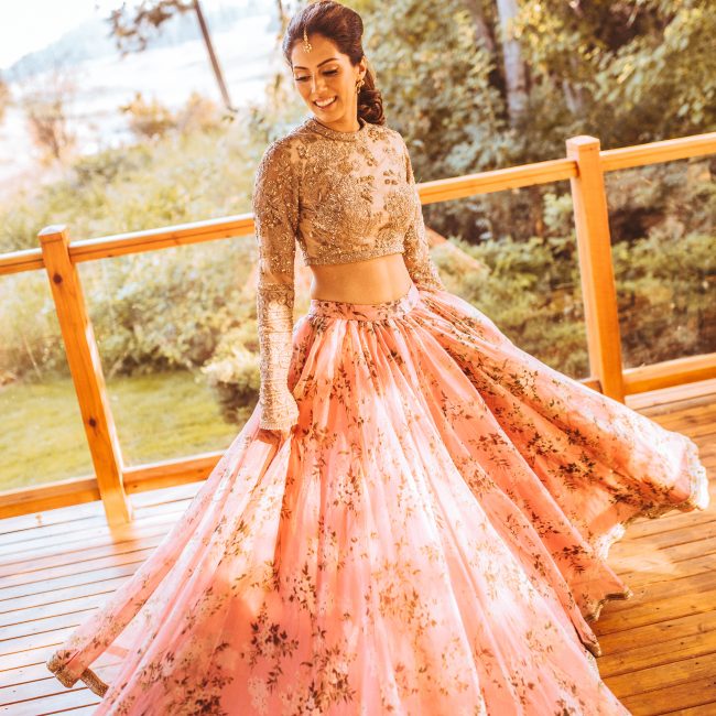 Couture: Mani Jassal (Mehendi), Sabyasachi (Ceremony), Powder (Vows), Falguni Shane Peacock (Reception)